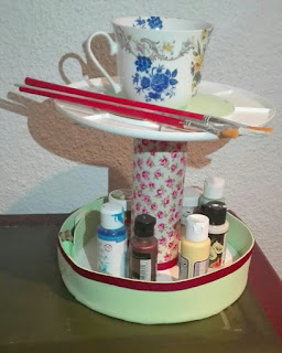Reciclando....bobinas de cables, zapatos usados y caja de cartón